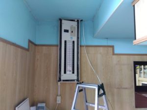 赤丸の分電盤内小ブレーカーを100Vから200Vに変換します。